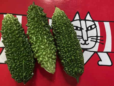 汗だくになって法面の草刈りをしていたら向かいの方からゴーヤをいただく。